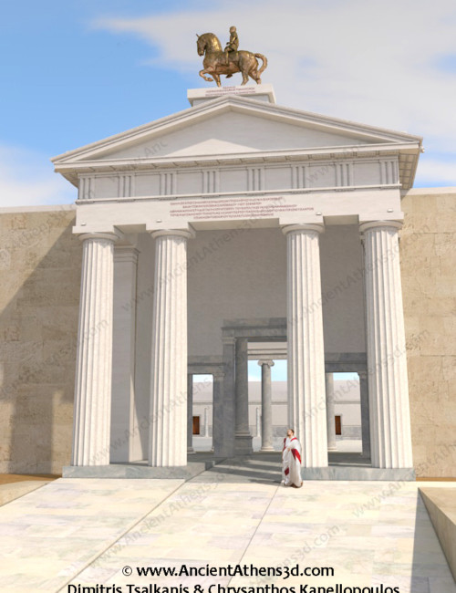 | CREDITS: Τα μοντέλα των αναπαραστάσεων βασίζονται στα CAD σχέδια του Χρύσανθου Κανελλόπουλου, καθηγητή Αρχαιολογίας στο Εθνικό Καποδιστριακό Πανεπιστήμιο Αθηνών και δημιουργήθηκαν από τον Δημήτρη Τσαλκάνη για το Ancient Athens 3d. |